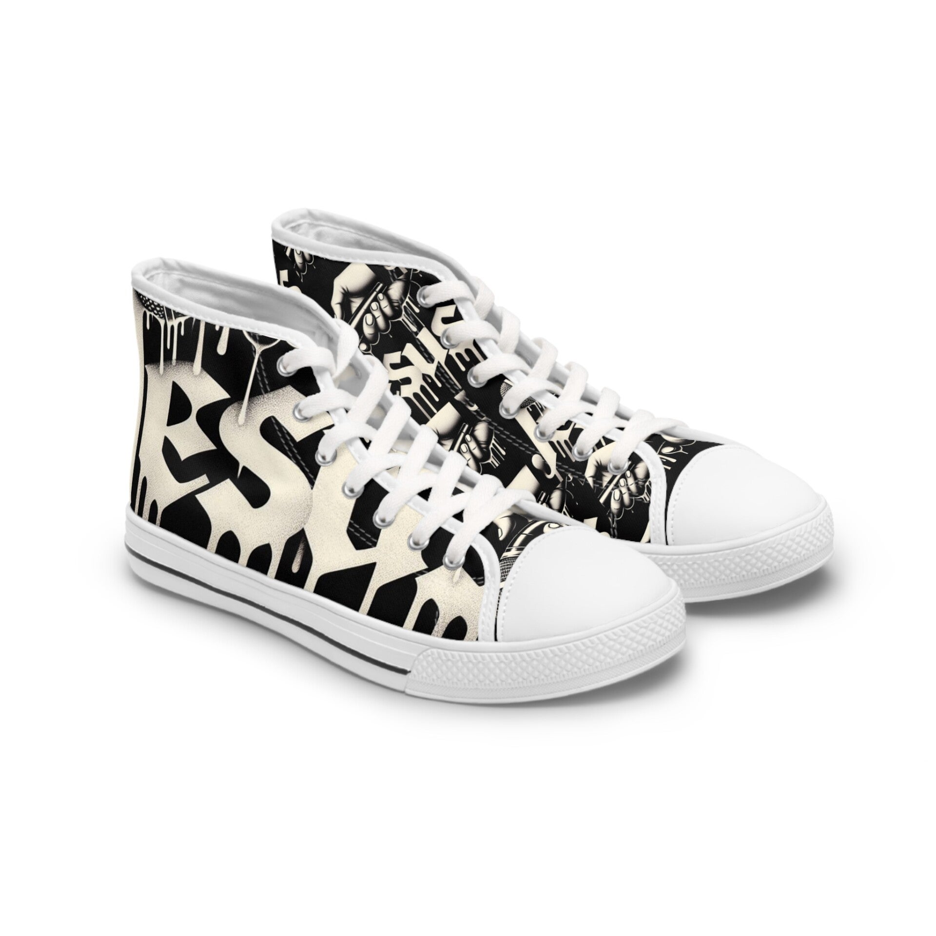 Step into style and comfort with these trendy high top sneakers, designed for the modern woman on the go. Their unique printed design adds a bold touch to any outfit, making them perfect for casual outings or creative expressions. Ideal for fashion enthusiasts and those who love standing out, these sneakers pair well with jeans, skirts, or even athleisure wear. Enjoy their soft, breathable material for all-day wear, whether you're running errands, hanging out with friends, or dancing the night away. These sneakers are a fantastic gift for birthdays, back-to-school shopping, or just a treat for yourself during holiday season celebrations. Embrace the trendy vibe of these high tops and let your personality shine through! Product features - Metal eyelets for added durability - Pleather round toe for longevity - Breathable polyester canvas for comfort - EVA insole provides shock absorption - Full wraparound print for a stylish look Care instructions - To maintain clean, use warm water with dish soap to clean off any dirt spots. It’s not necessary to soak the whole item. For hard-to-clean spots, use a soft-bristled brush.