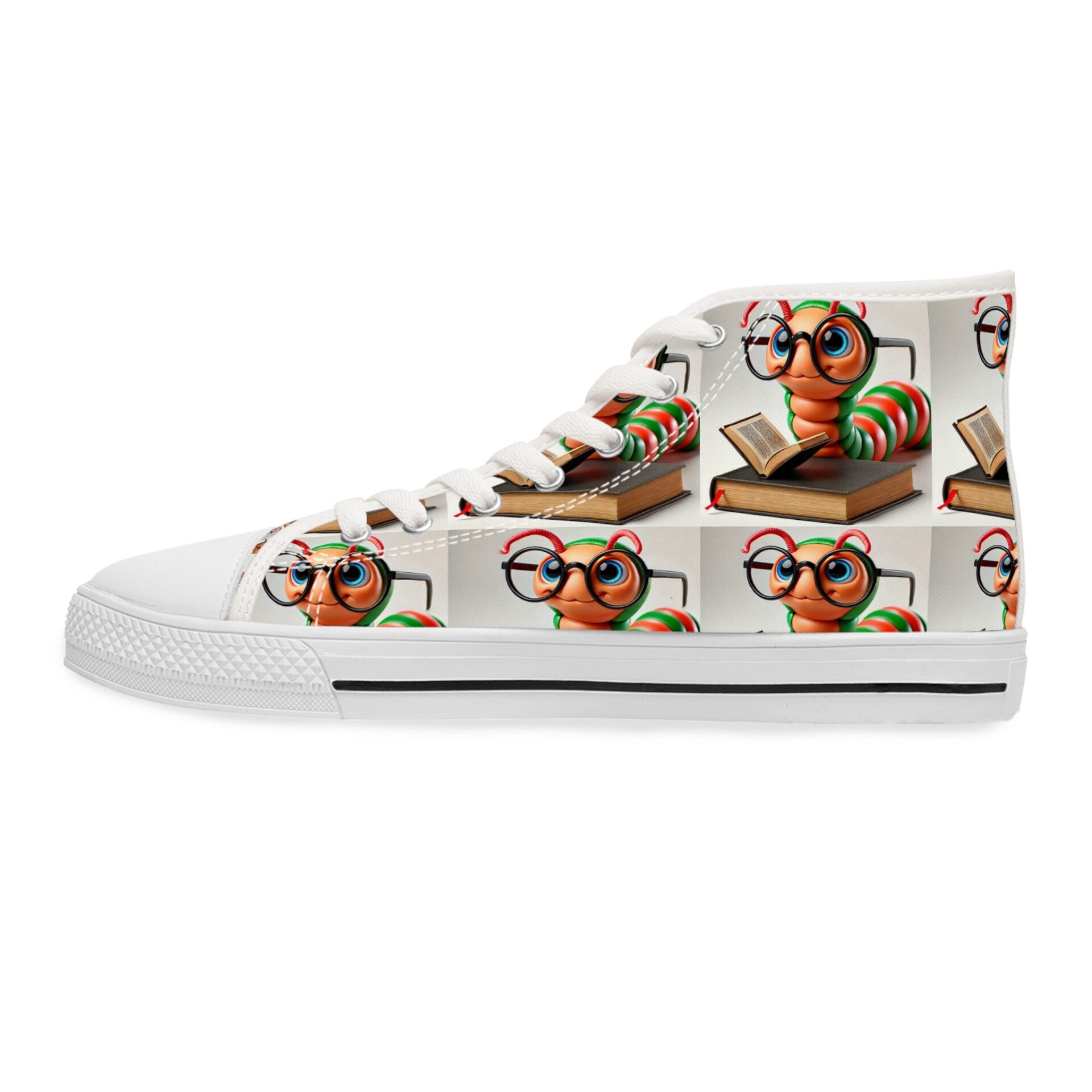 Smart Book Worm Cheerful, Fun, Festive and Very Playful Casual Footwear High Top Sneakers for Women and Girls, Perfect for Every Occasion