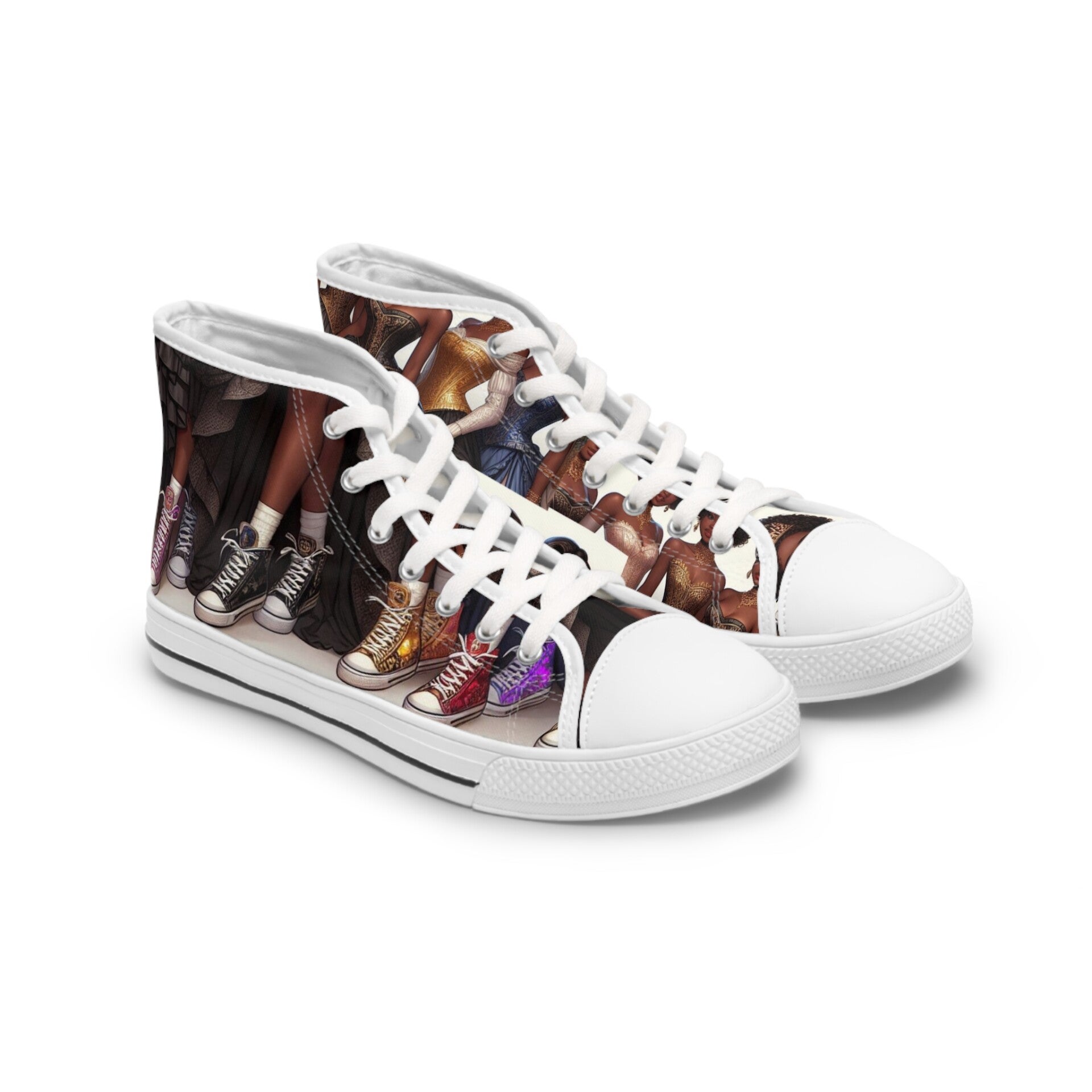 Step out in style with these vibrant Women’s High Top Sneakers! Featuring a full wraparound design, these sneakers showcase stunning artwork that adds a unique flair to any outfit. Their lightweight yet durable construction ensures that you stay comfortable all day long, making them perfect for casual outings or lively events. Whether you're going to a music festival, running errands, or hanging out with friends, these sneakers will elevate your look and showcase your personality. Ideal for fashion enthusiasts, art lovers, and anyone who loves to express themselves through their footwear. Perfect for gifting during holidays, birthdays, or just to treat yourself! Product features - Metal eyelets for enhanced lacing - Durable pleather round toe design - Soft and breathable polyester canvas - Shock-absorbent EVA insoles for comfort - Vibrant full wraparound print design Care instructions - To maintain clean, use warm water with dish soap to clean off any dirt spots. It’s not necessary to soak the whole item. For hard-to-clean spots, use a soft-bristled brush.