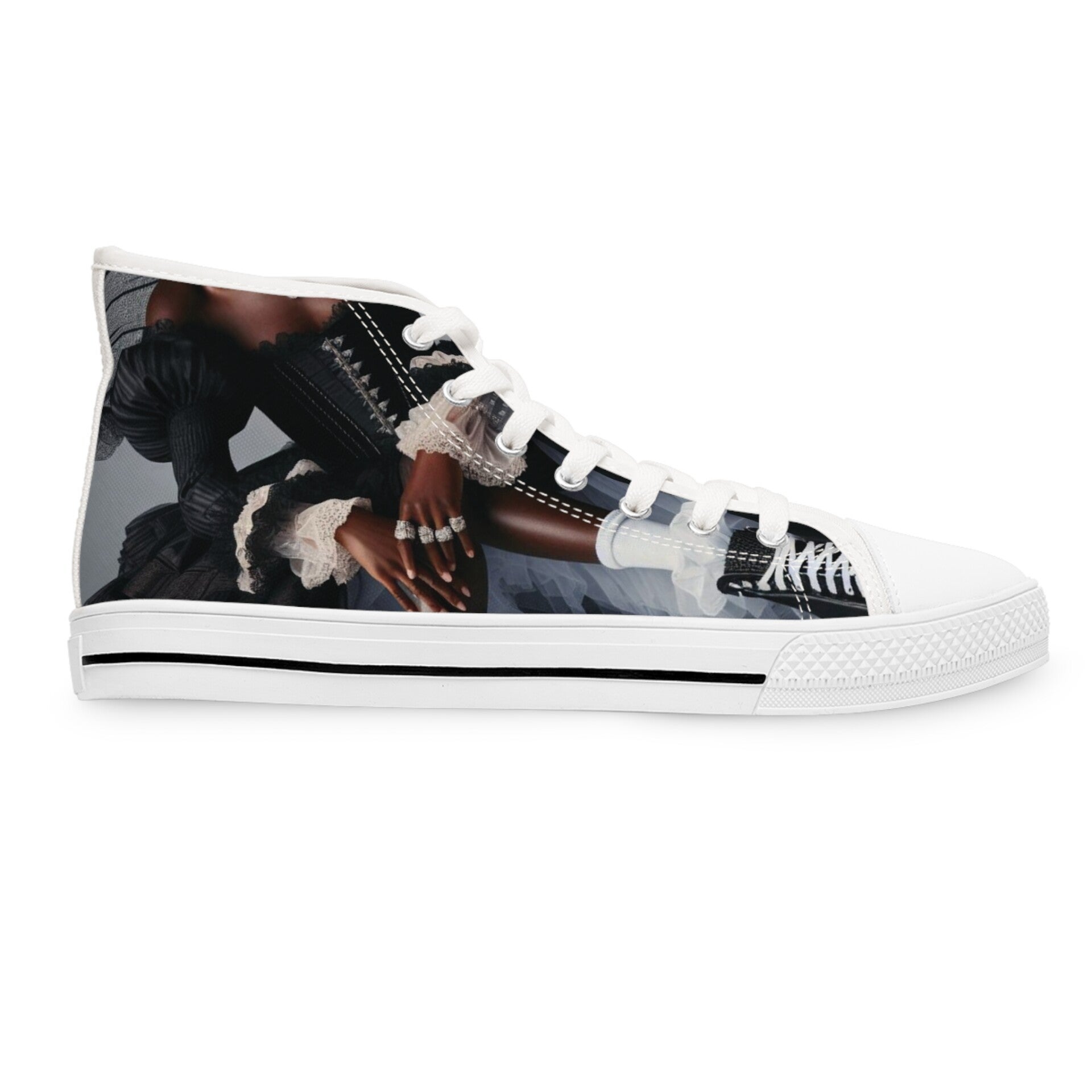 Step out in style with these trendy Women's High Top Sneakers. These sneakers exude a blend of comfort and chic, making them perfect for casual outings or just lounging in style. The vibrant, full wraparound print adds a unique touch, making each pair a statement piece in any wardrobe. Ideal for fashion enthusiasts and trendsetters, these sneakers are perfect for everyday wear, music festivals, or weekend adventures. Whether you're dressing up for a casual brunch or heading to a celebration, these sneakers will elevate your outfit. Perfect gifts for birthdays, holidays, or just because! Embrace the playful vibe and make a splash wherever you go! Product features - Metal eyelets for secure lacing - Durable pleather round toe for added longevity - Soft and comfortable 100% polyester canvas - Shock-absorbing EVA insole for ultimate comfort - Unique full wraparound print design Care instructions - To maintain clean, use warm water with dish soap to clean off any dirt spots. It’s not necessary to soak the whole item. For hard-to-clean spots, use a soft-bristled brush.