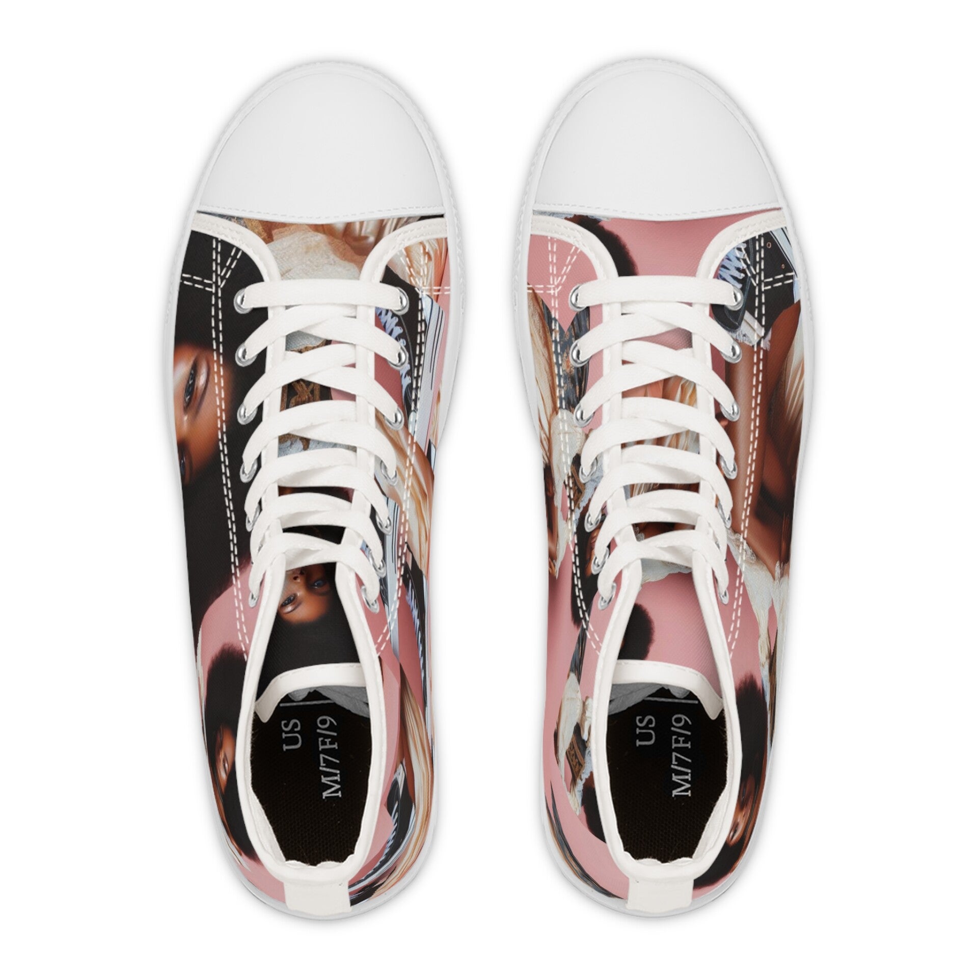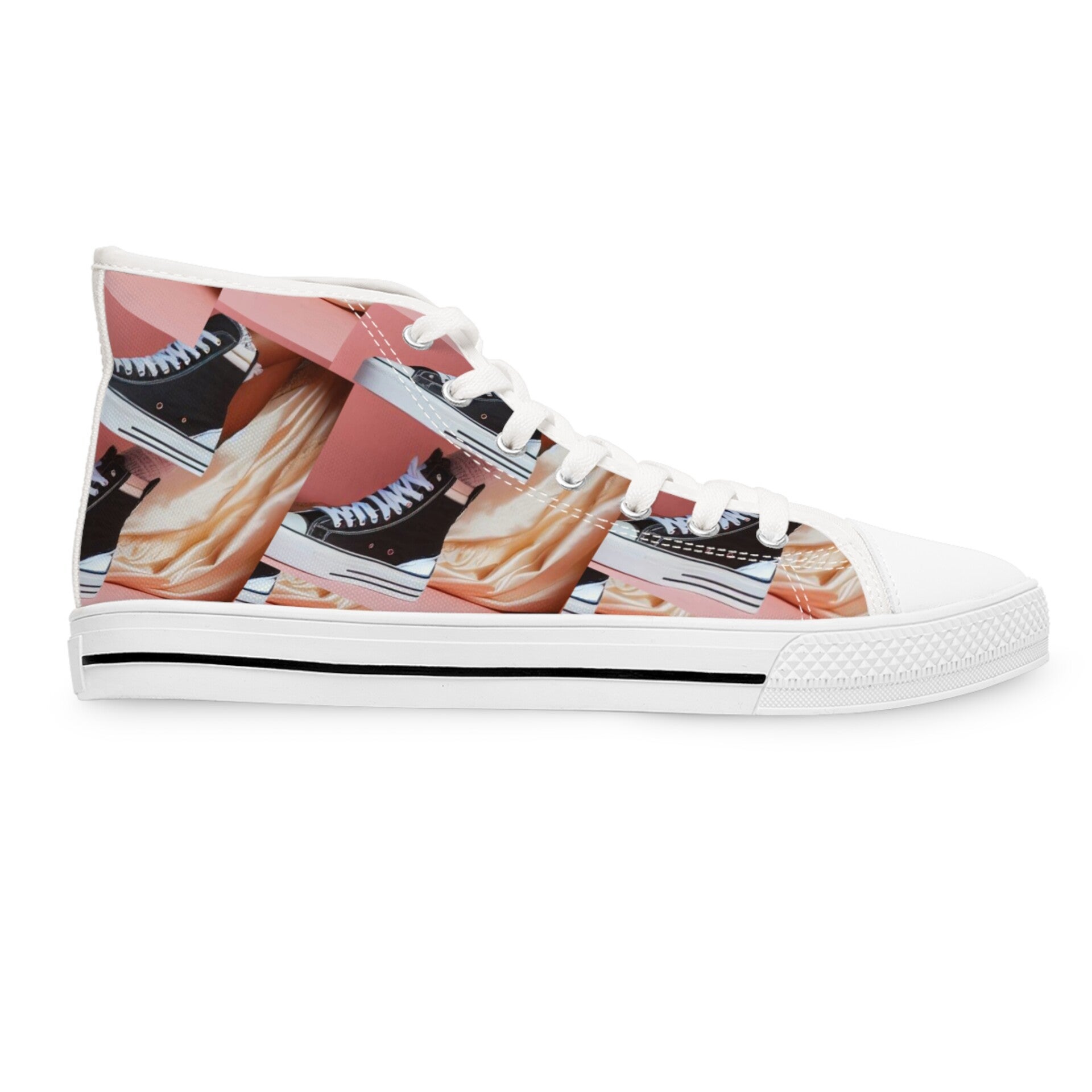 Made with breathable polyester canvas and featuring hi-poly deodorant memory foam insoles, these women's high top sneakers bear all the marks of an awesome shoe. Choose between black or white sole and laces, and enjoy the silver metal eyelets along with the lace-up closure. Add your designs and bring a bespoke staple to life. .: Breathable polyester canvas with PU leather decoration .: EVA deodorant memory foam insoles .: Full wraparound print (left side, right side, tongue) .: Durable rubber outsole .: Black or white decoration