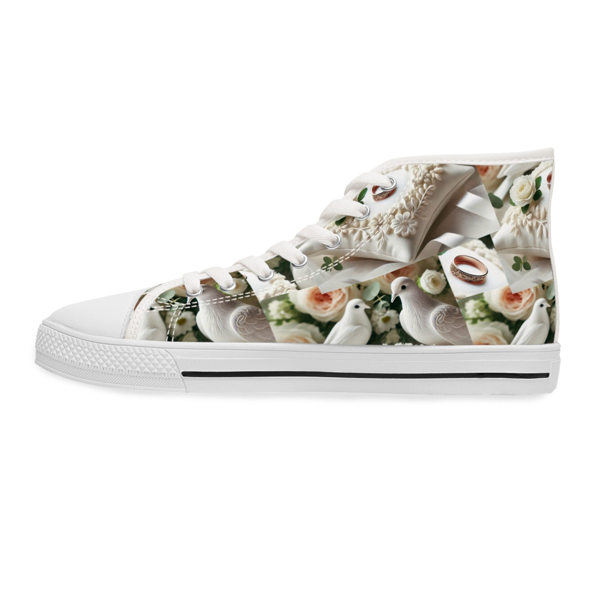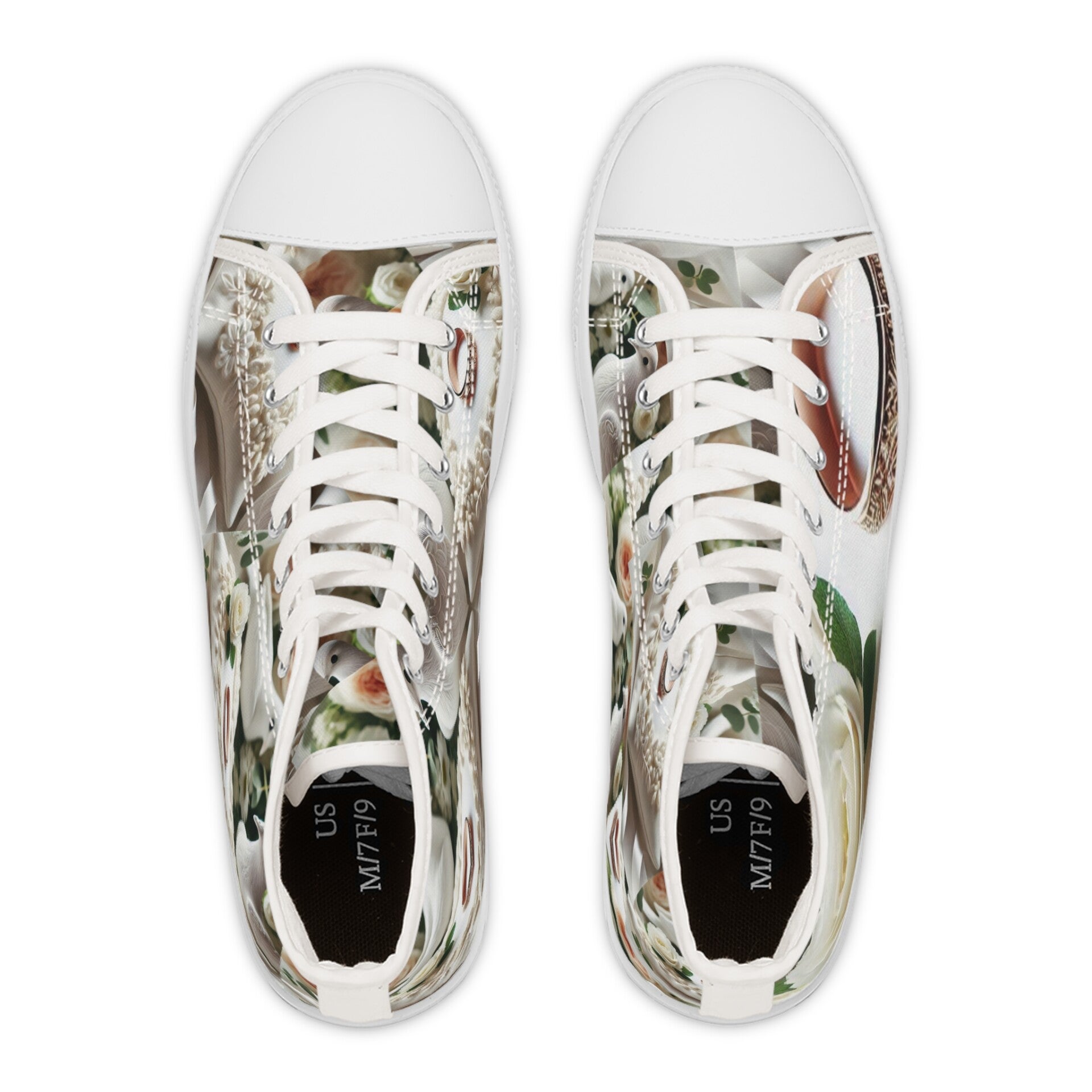 Step into style and comfort with these unique Women’s High Top Sneakers. Designed for the trendsetter, these sneakers combine elegance with a playful vibe, making them perfect for casual outings or dressing up for a night out. The intricate floral designs bring a touch of nature into your wardrobe, while the high-top style provides additional support and flair. Ideal for anyone looking to express their individuality, these sneakers are a great gift for special occasions like birthdays, anniversaries, or even holidays like Mother's Day. Perfect for the stylish woman who loves to make a statement without sacrificing comfort! Product features - Durable pleather round toe for enhanced longevity. - Metal eyelets ensure secure lacing and a stylish touch. - Soft 100% polyester canvas provides comfort and breathability. - Shock-absorbent EVA insole offers lightweight flexibility. - Pristine full wraparound print adds a unique flair. Care instructions - To maintain clean, use warm water with dish soap to clean off any dirt spots. It’s not necessary to soak the whole item. For hard-to-clean spots, use a soft-bristled brush.
