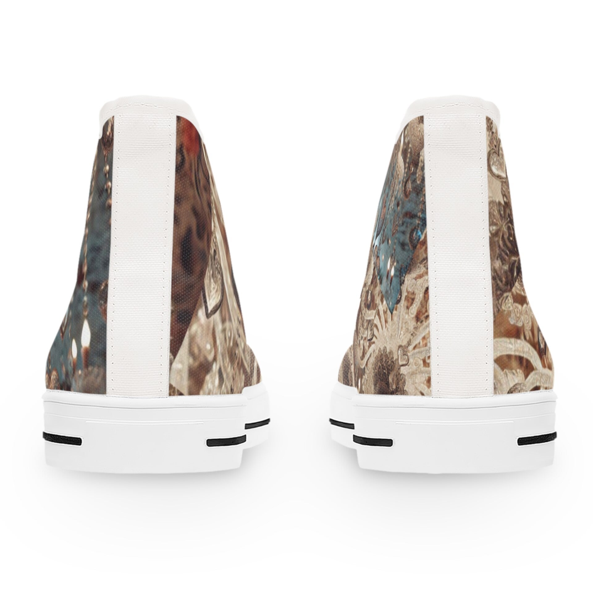 Step out in style with these unique Women's High Top Sneakers. Designed to make a statement, they feature a vibrant full wraparound print that showcases stunning patterns, perfect for adding flair to any outfit. Whether you're heading to a casual brunch, a lively festival, or simply running errands, these sneakers are designed for comfort and versatility. The breathable polyester canvas keeps your feet cool, while the EVA insole provides cushioned support for all-day wear. Perfect for fashion-forward individuals, these sneakers are an excellent choice for birthdays, casual outings, or just treating yourself. Step out with confidence on any occasion!