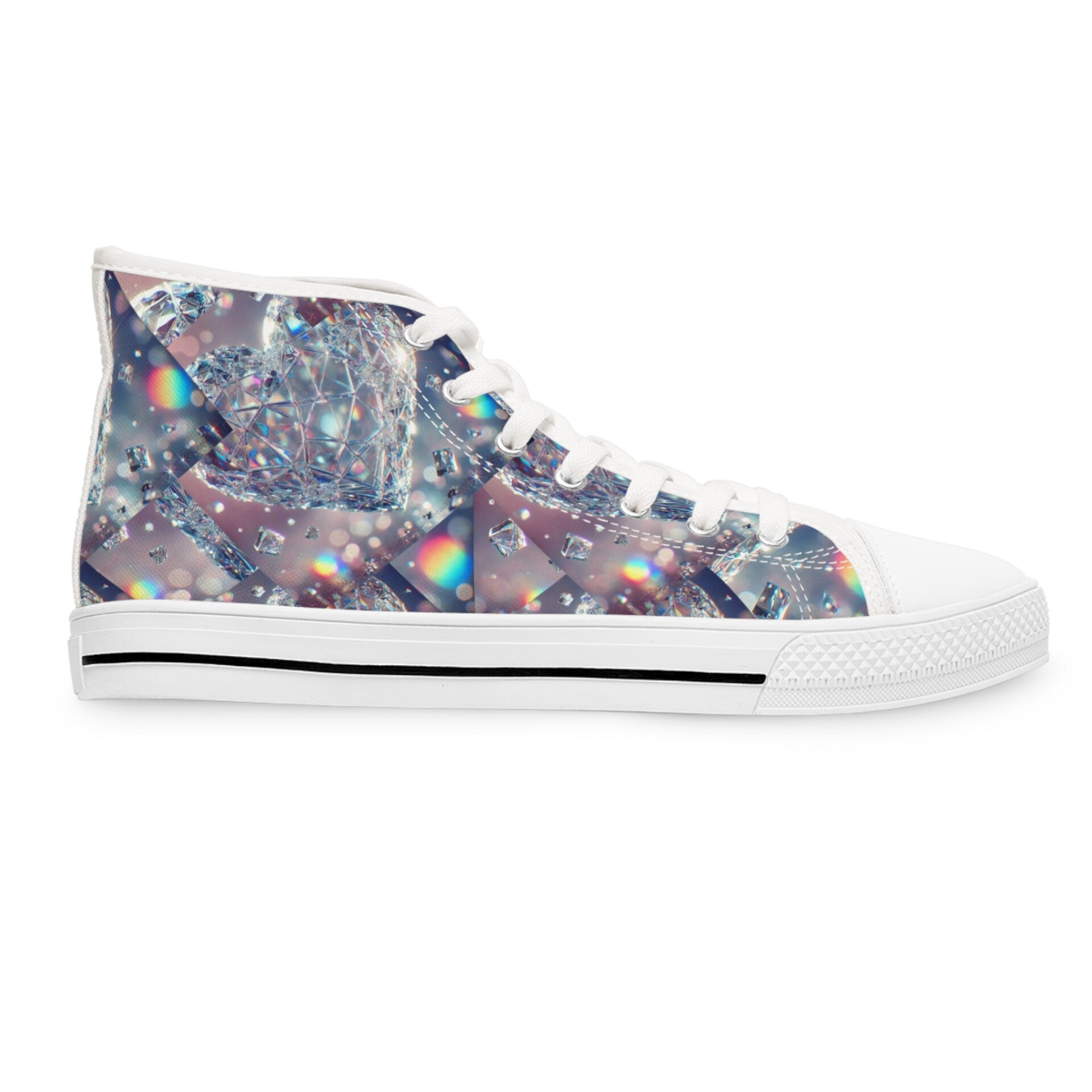 Step into style and comfort with these stunning Women's High Top Sneakers. Designed for the modern woman, these sneakers exude a trendy vibe that easily complements any outfit, from casual jeans to chic dresses. Perfect for everyday wear, they offer both flair and function, making them an ideal choice for outings, vacations, or simply running errands in style. Whether you're celebrating a special occasion or enjoying a laid-back weekend, these sneakers are versatile enough for any moment. Ideal for fashion-forward individuals, they make a thoughtful gift for birthdays, holidays, or just to treat yourself! Product features - Metal eyelets for added strength and durability - Black pleather round toe for enhanced longevity - Soft and comfortable 100% polyester canvas - Shock-absorbent EVA insole for all-day wear - Breathable design with full wraparound print options Care instructions - To maintain clean, use warm water with dish soap to clean off any dirt spots. It’s not necessary to soak the whole item. For hard-to-clean spots, use a soft-bristled brush.