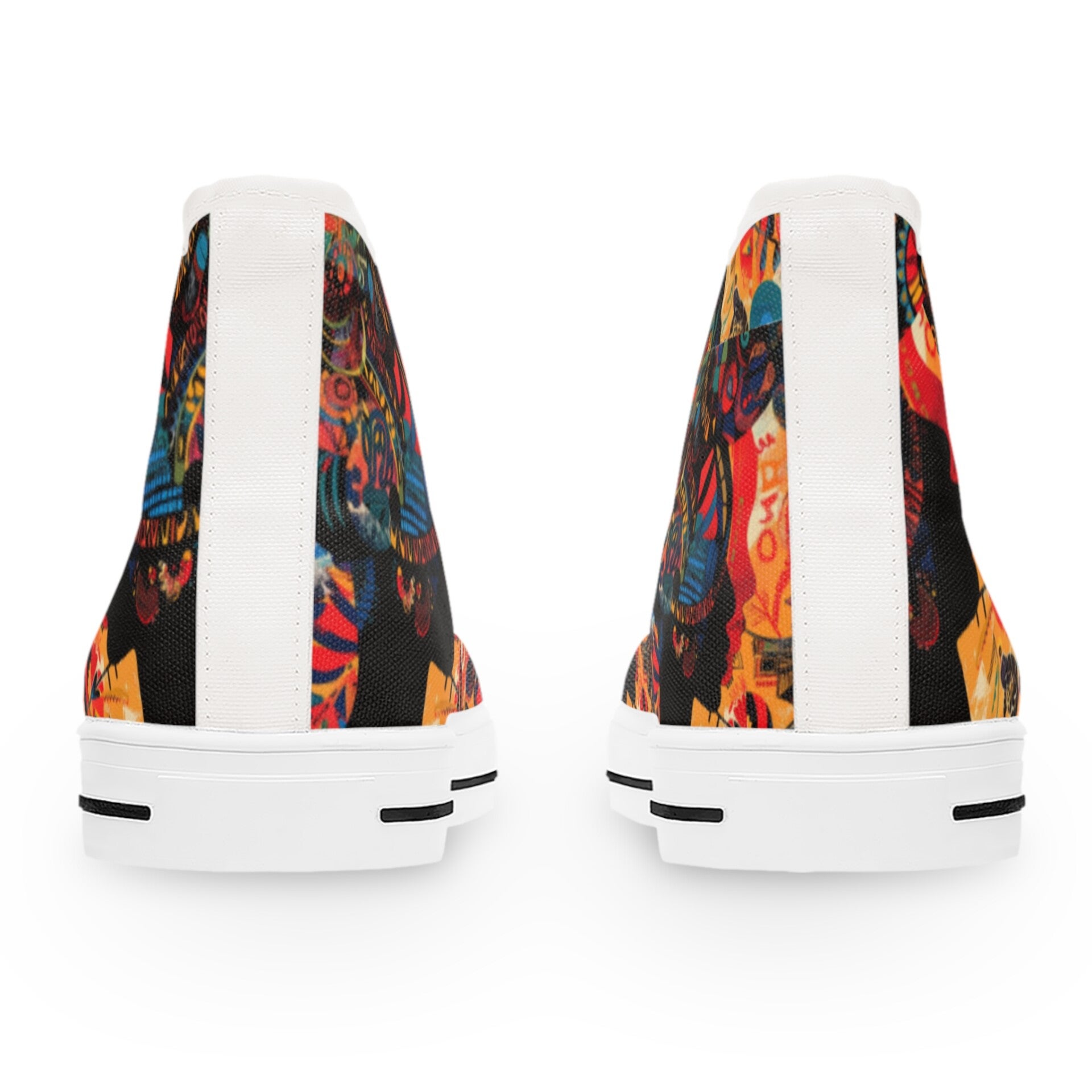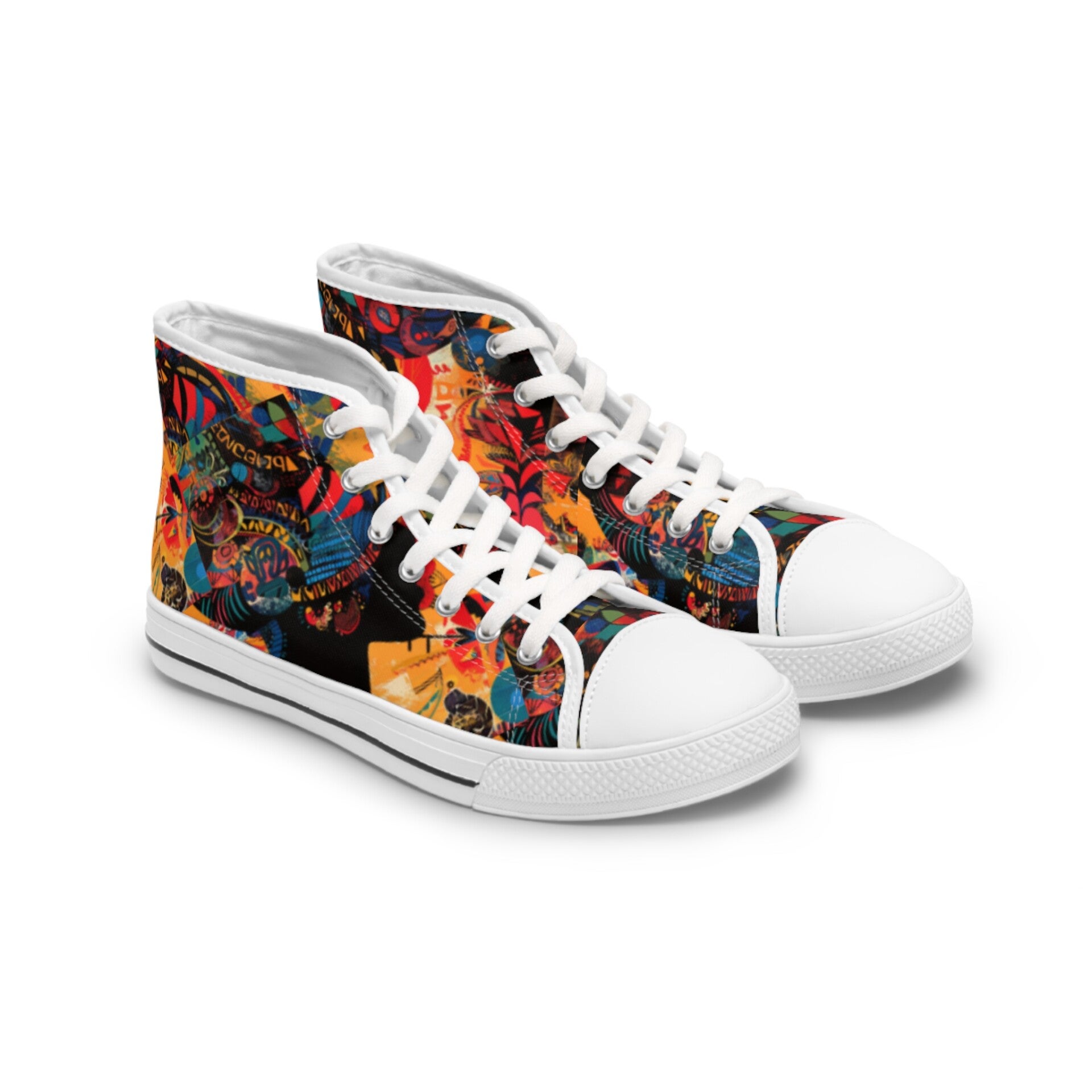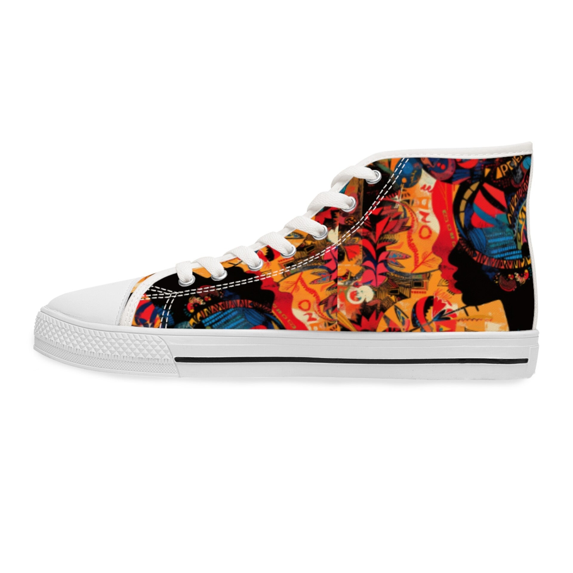 Made with breathable polyester canvas and featuring hi-poly deodorant memory foam insoles, these women's high top sneakers bear all the marks of an awesome shoe. Choose between black or white sole and laces, and enjoy the silver metal eyelets along with the lace-up closure. Add your designs and bring a bespoke staple to life. .: Breathable polyester canvas with PU leather decoration .: EVA deodorant memory foam insoles .: Full wraparound print (left side, right side, tongue) .: Durable rubber outsole .: Black or white decoration